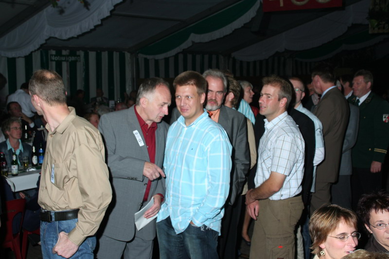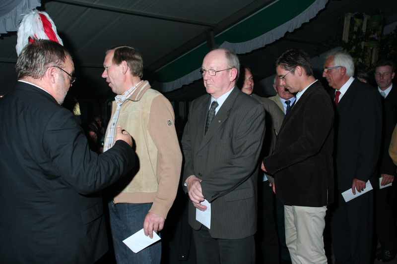 Im Rahmen des viertägigen Jubiläums-Programms wurden diese Programmpunkte im Festverlauf vom üblichen Samstagabend auf den Freitagabend vorverlegt. Bei den Festvorbereitungen gab es einige Überlegungen im Vorstand, ob man denn am Freitag, der ja für alle ein voller Arbeitstag ist, wohl schon mit einer großen Beteiligung rechnen dürfte. Aber schon beim ersten Antreten des Bataillons wurden die Erwartungen deutlich übertroffen. Es waren mehr als 250 Schützen im Festzelt angetreten.