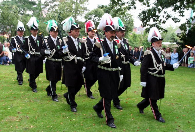 18:00 Uhr Antreten der Schützen im Festzelt, Ausholen der Fahnen, Abholen des Präsidenten am Haus Wilmers