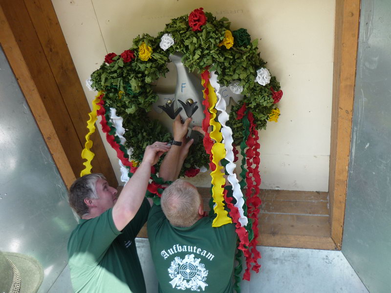 Um 13.40 Uhr fällt der Vogel Dann fasst er sich ein Herz, geht unter den lauten Anfeuerungsrufen zum dritten Mal hintereinander nach vorne und holt den Vogel um 13.40 Uhr von der Stange. Jubel brandet auf, und schon wird der neue König auf den Schultern durch die Menge getragen. Die zur Königin erkorene Laura Bachorski wird ebenfalls kurzerhand geschultert und unter dem Applaus der Schützengesellschaft zu ihrem Regenten getragen, mit dem zusammen sie nun das Schützenvolk regieren wird.