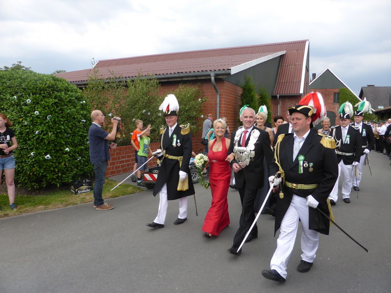 Das Throngefolge bilden Lars Doods und Sandra Lüdiger, Wilhelm Oenning und Vera Göring, Daniel Keppelhoff und Lisa Hasenkamp sowie Hendrik Peek und Marleen Overkamp.