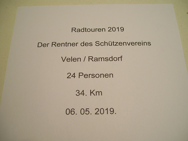 Nachbetrachtung der Senioren-Radtouren 2019 des St.Vitus Schützenverein Südlohn 1606 e.V.